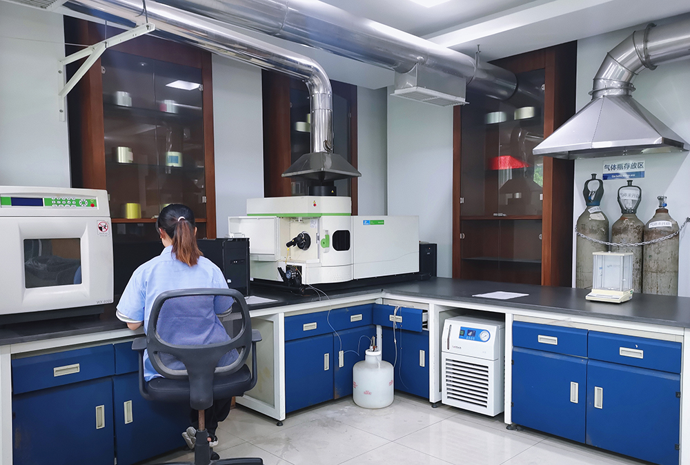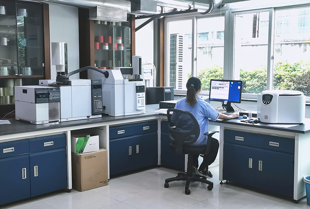 • 公司設有獨立的物理性能檢測室1個,安全性指標檢測室2個,有氣相色譜儀、珀金埃爾儀器(PE)ICP-OES、質譜儀、頂空進樣儀等,能對各品種煙用內襯紙的溶劑殘留、特定芳香胺等安全性指標和各項物理指標實施檢測。